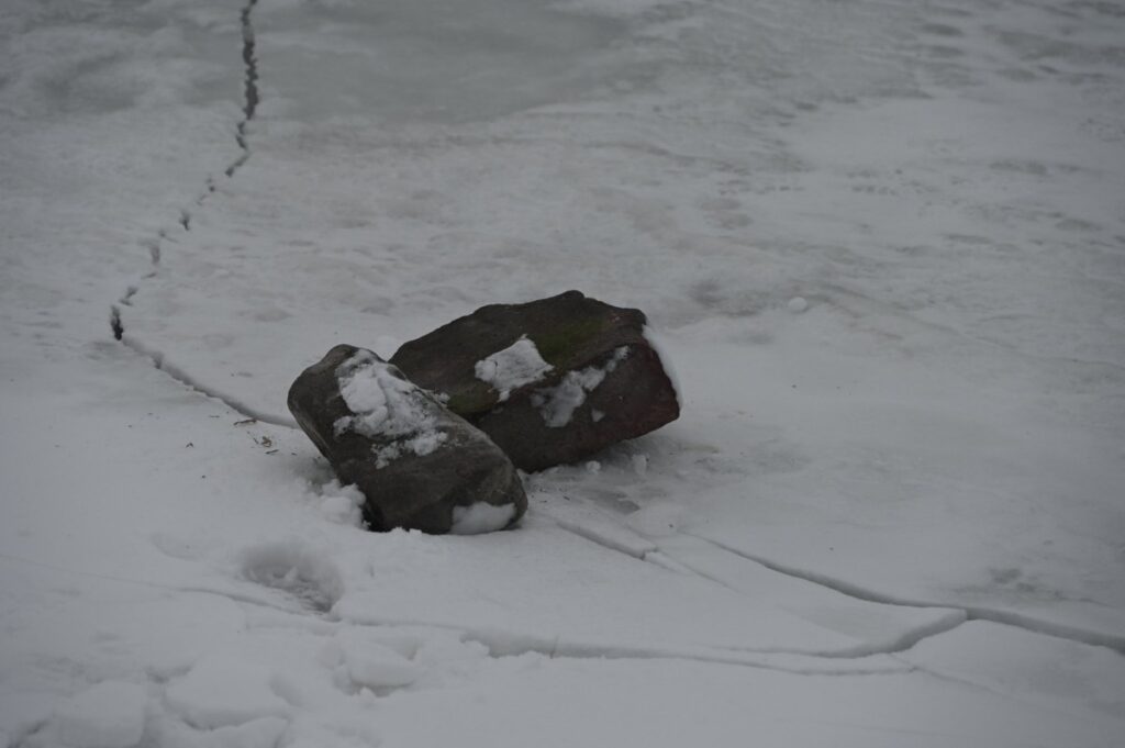 A balatonfenyvesi polgárőrség fokozottan figyeli a települést és a partot is. Szomorúan tapasztalták, hogy befagyott Balaton jegén egyre több a nagy méretű kő.