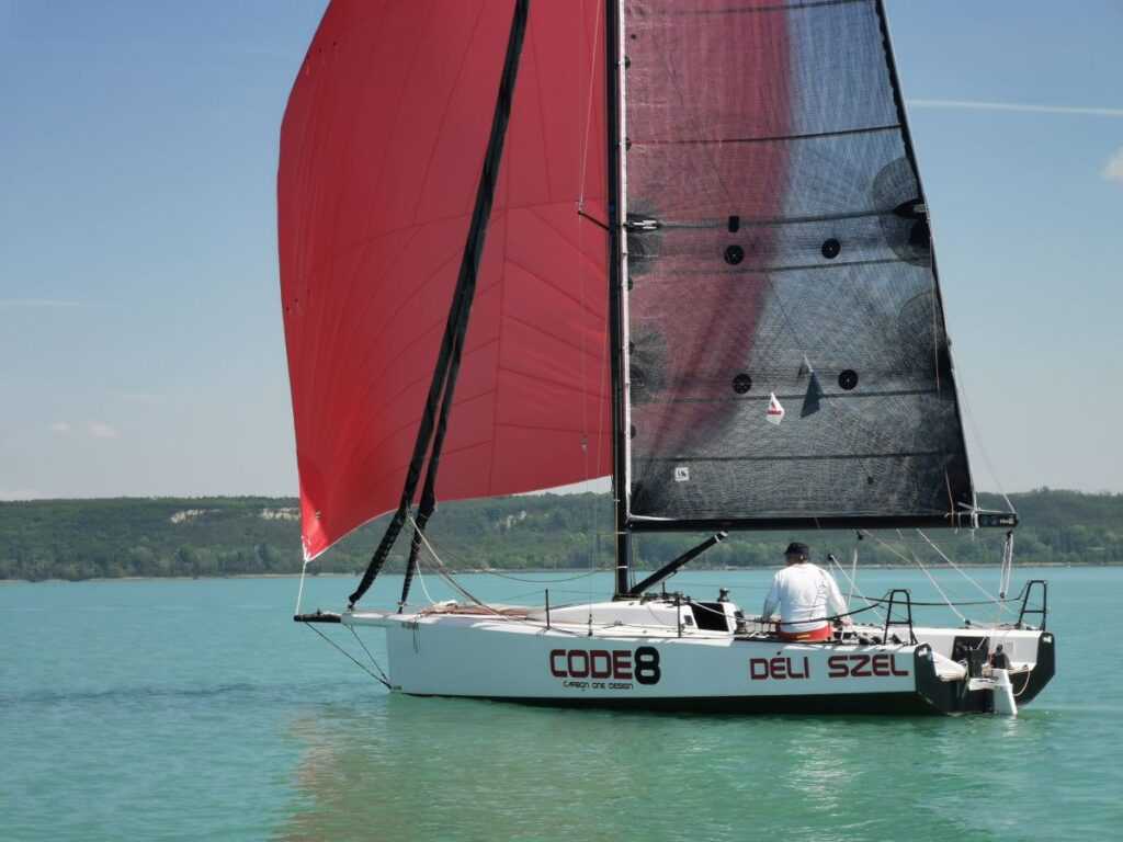 Úgy sikerült a rajtom, ahogy elképzeltem, ami a hosszú táv miatt inkább mentálisan fontos. A mezőny jelentős része az északi parthoz húzott, ott kreuzoltunk Almádiig. Majd gyengülni kezdett a szél, a bója után az eleje kettészakadt. Aztán Alsóörsnél limány, majd megjött a keleti-északkeleti, felépült és egyenletessé vált, így előkerültek a genakkerek. A csőből némi előnnyel léptem ki, de Földvár előtt – a jó ég tudja, hogyan – egy Code 8 elém került. A szél végigfújt a Balatonon, szépen halzolgatva mentünk el Keszthelyig. Badacsonytól már megint én haladtam elöl, de a keszthelyi bóját rosszul világították ki, így csöppet túlhúztam rajta.