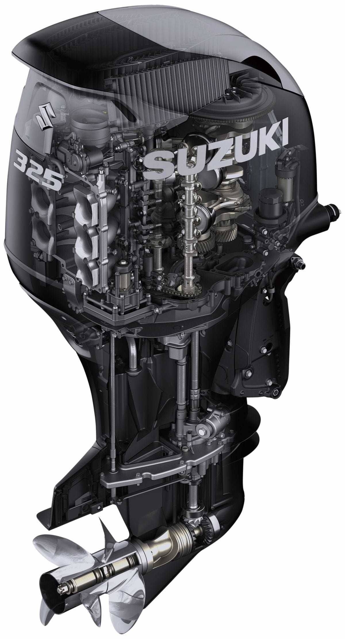 A Suzuki mérnökei olyan kompakt, könnyű hajómotor tervezésére törekedtek, amely maximális gazdaságos működés mellett kiváló teljesítményre képes. Emellett az is céljaik között szerepelt, hogy a DF325A motort akár az alacsony (91 RON) oktánszámú üzemanyag is hajthassa, amely a Suzuki legendás megbízhatóságával párosulva lehetővé teszi, hogy a modellt sokféle nagyméretű hajóhoz használják a világ minden pontján. A hagyományos, egy hajócsavaros motoroknál a tolóerő mellett jelentős propellerhatás is fellép, amely energiaveszteséggel is járhat. A Suzuki mérnökei a forradalmi, két hajócsavaros technológiával ezt az elpazarolt energiát inkább aktív teljesítménnyé formálták.