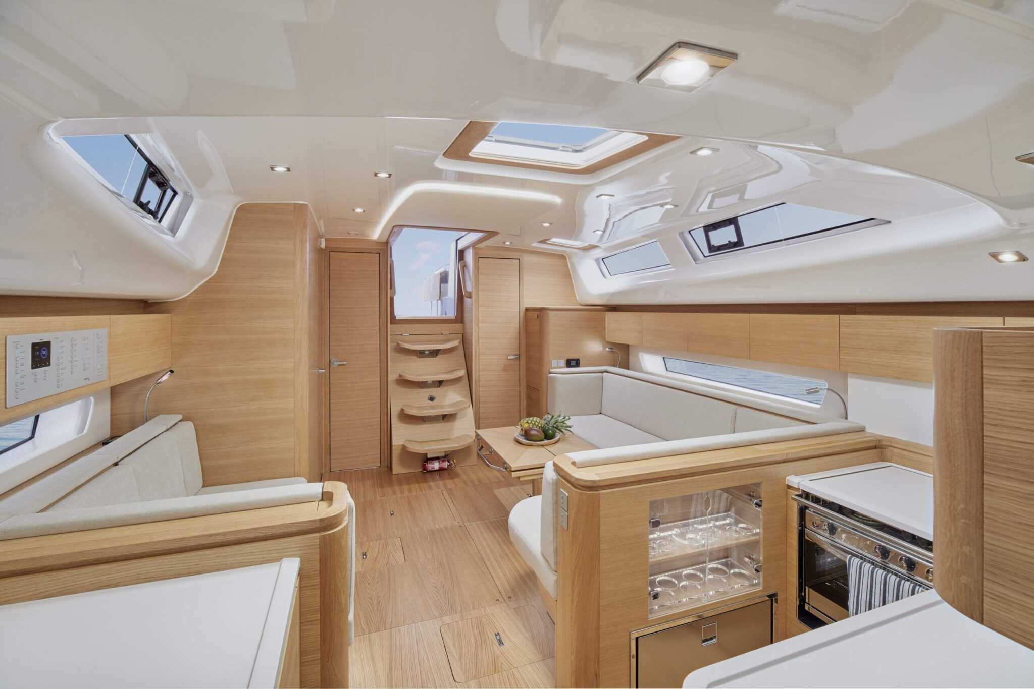 A jacht a konkurenciához képest a maga 12,7 tonnájával szinte könnyűnek számít, és ez a vitorlázótulajdonságában is visszatükröződik. Könnyen és gyorsan reagál a kormányos mozdulataira. A kormánymű technikailag hibátlan megoldással büszkélkedhet a Jefa rendszerének és a gyártó cég szakértelmének köszönhetően. Bár idő- és költségigényes beépíteni, ha máskor nem, vészhelyzet esetén biztosan kifizetődik.