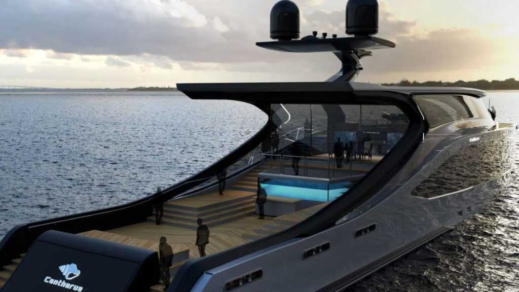Darin Osborne igen futurisztikus tervekkel állt a közönség elé, amikor bemutatta a 69 méteres Cantharus jacht koncepcióját.