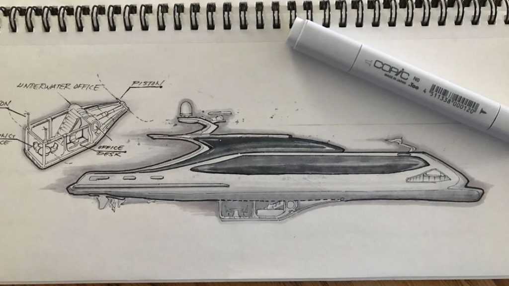 A koncepciójacht tervezése azzal kezdődött, hogy Osborne rajzolt egy társalgót a hajó közepére, alá pedig egy irodát, amelyet a tulajdonos kérésére Master kabinná alakítanak. Az elrendezés zavartalan kilátást biztosít a tengerre a vízszint felett és alatt, arra ösztönözve a vendégeket, hogy teljesen merüljenek el abban a környezetben, ahol éppen tartózkodnak.
