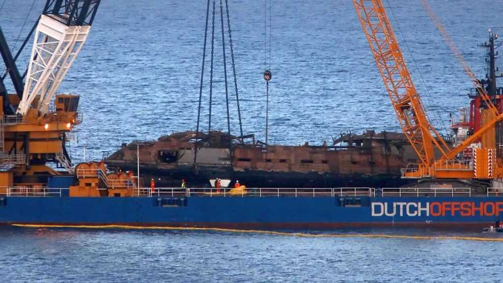 A hajótest a Cap Martinet közelében süllyedt el, maradványait több hónap elteltével emelték ki, hogy a szárazföldön lévő fémhulladék-kezelőbe szállítsák.