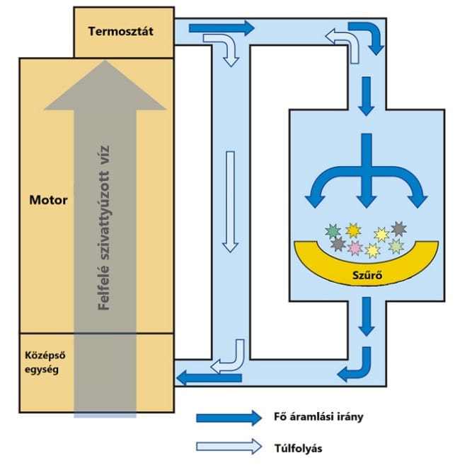 Az eszköz egyszerűen felszerelhető a visszavezető ágra, és nem befolyásolja a motor teljesítményét, mivel csak a motor hűtése után visszatérő vizet használja fel.