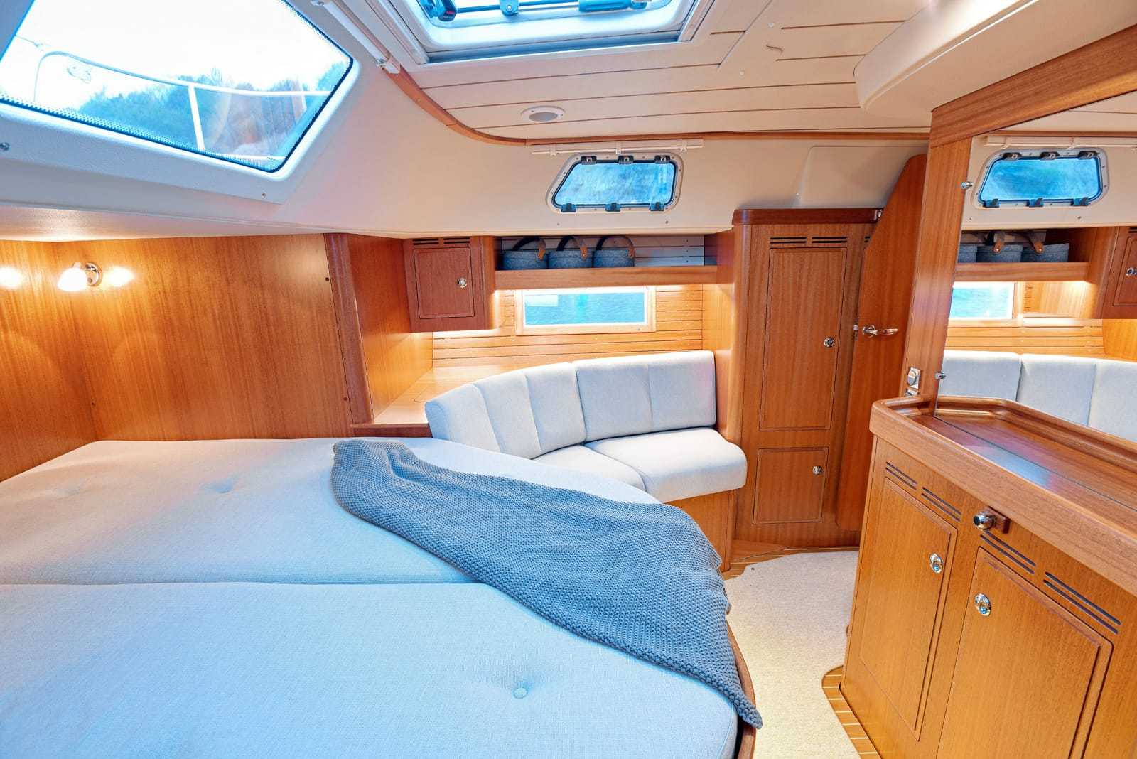 A luxus mindig a választás szabadságát jelenti. Nos, a HR 44-es belső kialakításában számtalan lehetőség közül választhat egy reménybeli tulajdonos: eldöntheti, hogy egy vagy két kabint kér-e az orrba. A megszokott V ágy mellé lehet kisebb, nagyobb, vagy semmilyen emeletes ágyas kabinrész, akár külön bejárattal is, a fürdő méretét variálva kialakítják bármelyiket. A hátsó kabin esetén is válogathat a kedves vevő, hogy két külön ágy legyen-e kanapéval, vagy extra széles franciaágy plusz kanapé. És hát itt sem lehet fürdő nélkül maradni: plexilap választja le a kabin zuhanyzóját.