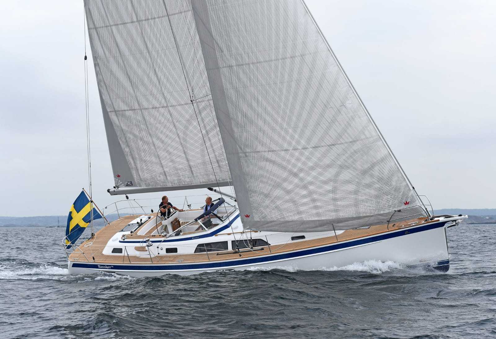 Ezen a hajón semmi szükség backstagra, az orrvitorla átfed a grószra, de könnyen manőverezhető. A vízvonala 12,88 méternyi, és ezt ismét a 43-ashoz tudjuk viszonyítani, hiszen annál 1,3 méterrel hosszabb. Az adatok szerint a HR 44-es csaknem 8,5 csomóra képes 100 fokról jövő 12-es szélben, ami igazán fürge mozgást ígér, nem csoda, ha ez a hajó nemcsak túrázásra, de versenyzésre is alkalmas. Ráadásul mindent elkövetnek azért, hogy minél könnyebb legyen irányítani.
