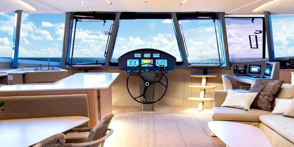 A MODX üvegszálból épült, bioforrású gyantát és 40 százalékban újrahasznosított habot használva. Komoly luxust képvisel a hajóbelső, különösen a főfedélzet, amely egy motoros jacht stílusát idézi kényelmi szinten, 135 négyzetméter lakótérrel a szalonban, az első és a hátsó fedélzeten – ez a tér nagyrészt testreszabható, hogy megfeleljen magán-, charter- vagy „expedíciós” használatra.