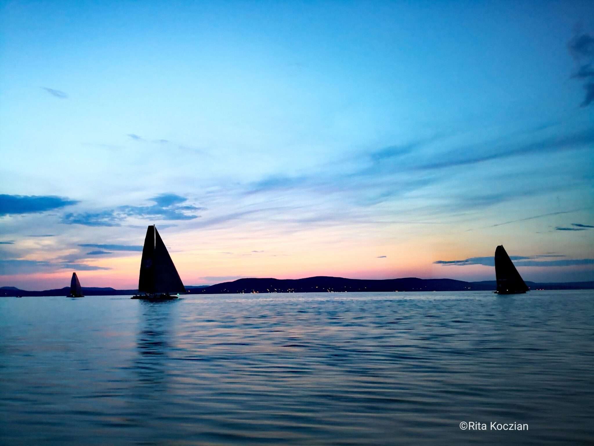 A reggel 9 órás rajtot talán az RSM2 kapta el legjobban, szépen haladtak együtt a katamaránok, majd ahogy egyre jobban élénkült a szél, más-más útvonalakat választottak. Egészen a Tihanyi-szorosig borult, felhős idő volt, nagyon kellemes széllel, így jó tempót tudtak menni a rohanógépek.