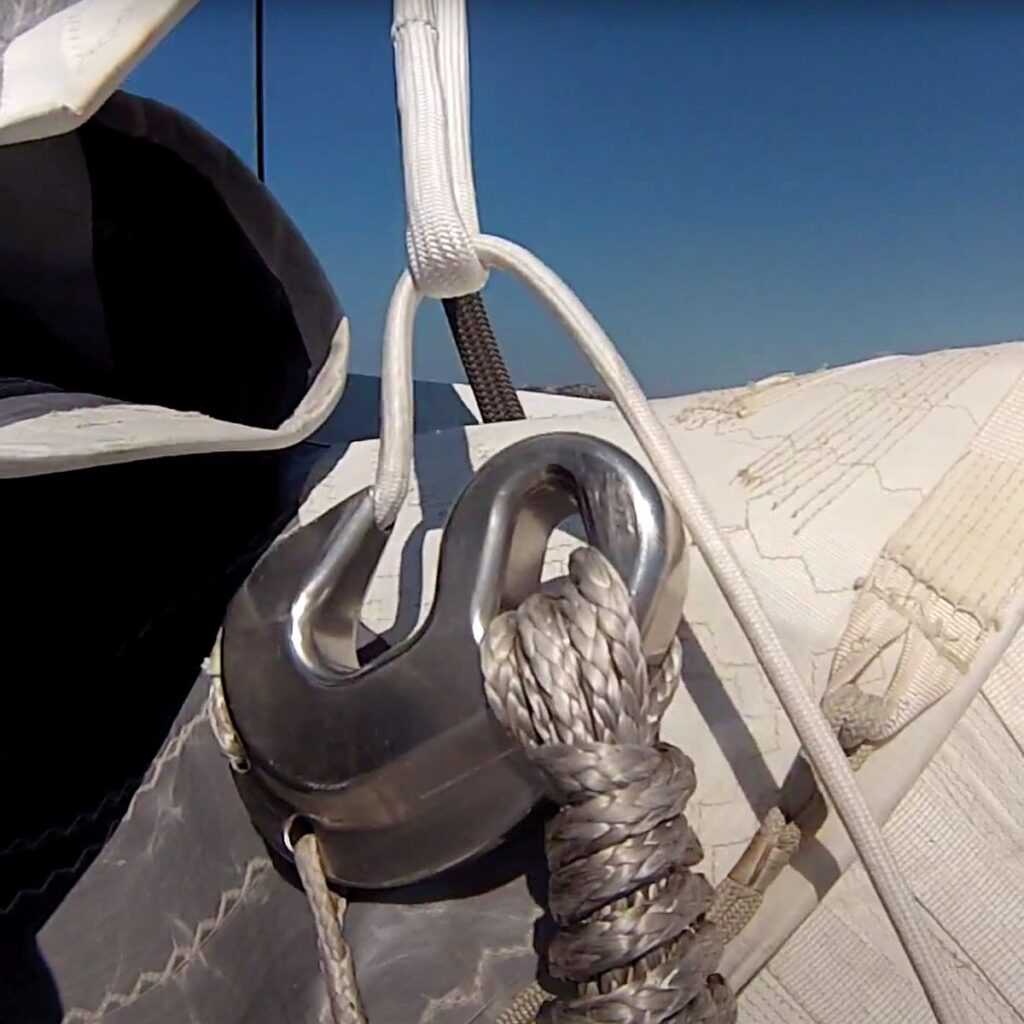 – A reffzsinórok nincsenek folyamatos terhelés alatt, mert a vitorlát a Dyneema fül és a horog tartja. A zsinórok csak a horgot mozgatják.