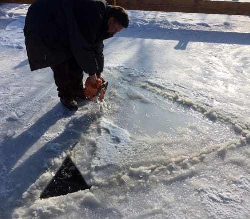viz_alatti_karacsonyfa_02_b Miután mindent előkészítettek, levitték a feldíszített karácsonyfát is, amelyet fejjel lefele belehelyezték a talpba. A többórás munkát nehezítette, hogy a hideg miatt folyamatosan fagyott vissza a tó jege, ennek ellenére a háromszéki búvároknak arra is volt idejük, hogy a jól végzett munkára még a vízben forralt borral koccintsanak. Ezt követően pedig kiemelték a dálnoki tóból a fenyőfát.