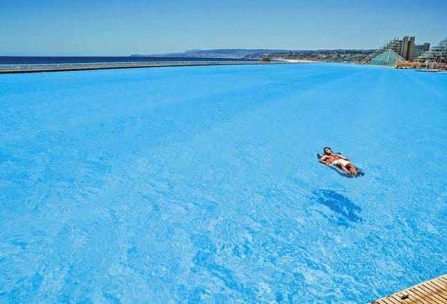 A világ legnagyobb medencéjét Chilében építették fel, amelynek vízfelülete másfél futballpályányi.