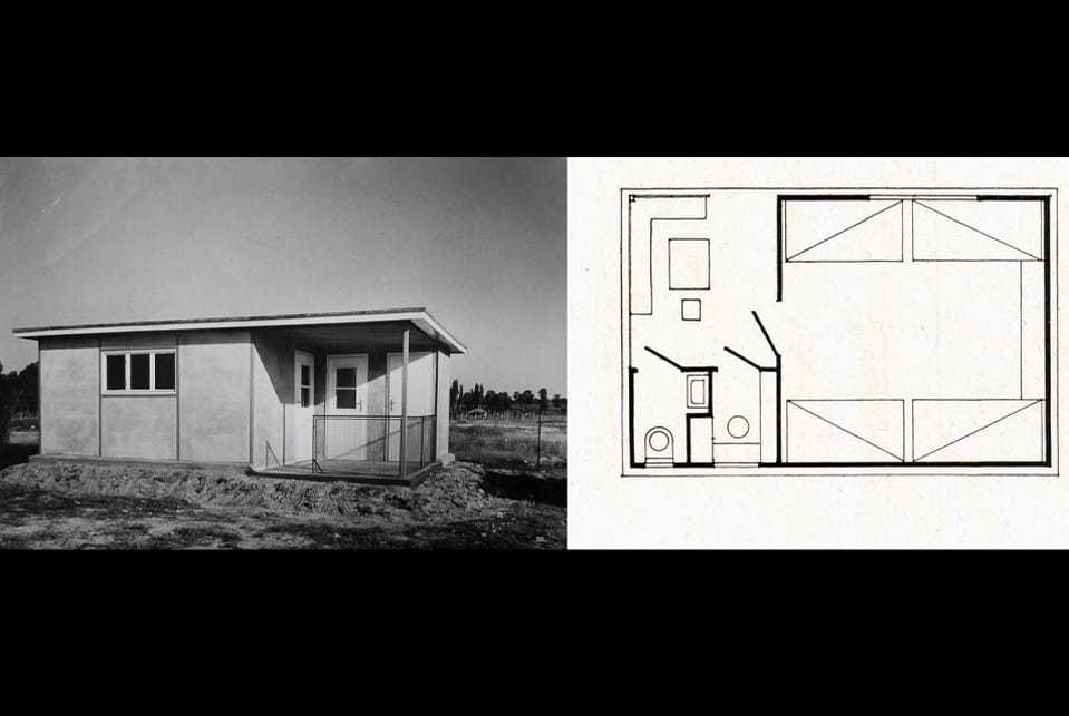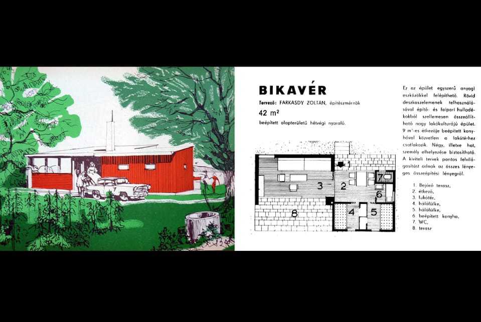 A háború utáni tervek közül egy megvalósultat és egy típustervet emelek ki. Kismarty Lechner Kamill Zamárdiban álló nyaralója (1954) ugyancsak minimál lakás: egyetlen nyugat felé felnyitott szobából és egy délre-nyugatra egyaránt nyíló fedett teraszból áll, a tömeg mögé rejtett kis kiszolgáló blokkal. Noha minden korábbi hazai példától különbözik ferde vonalaival és a terméskő falai fölé nyúló hullámpala tetővel, – célszerűsége, szellemesen egyszerű szerkesztése és gazdaságossága a háború előtti modern épületek méltó párjává avatják. Alapterülete nagyjából megegyezik Farkasdy Zoltán egyik 1965-ös ajánlati tervével. A Bikavér típusnevű ház 42 m2-es alapterületén kényelmesen négy, szükség esetén hat fő elhelyezésére alkalmas. Az építész a végletekig takarékosan használta a teret, hogy kímélje az építtető pénztárcáját. Miközben az alaprajzot gazdaságosan szervezte, arra is figyelt, hogy az apró helyiségek kapcsolatából térélmény bontakozzon ki. Az egymásba nyíló lakótér és étkező az ellenkező irányba néz, s a csatlakozó fülkéken ajtó helyett függöny van, így e tércsoport tágasabbnak tűnik.