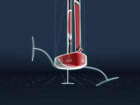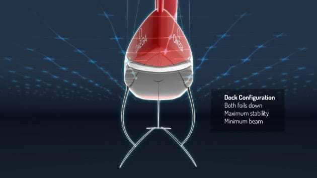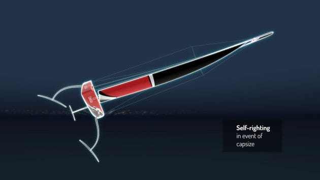 Az új hajó a katamaránokhoz hasonlóan repülni fog. Az AC75-ös a tőkesúly helyett két T foilt kapott.