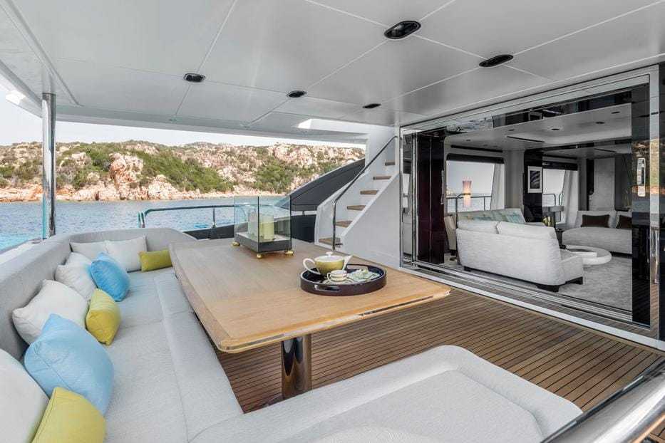A Grande igazi álomhajó: az állandó személyzet két kabinja mellett a vendégek négy kétszemélyes lakosztályban pihenhetnek, a három szinten pedig hét fürdőszoba áll a rendelkezésükre. A jacht nemcsak elegáns és jól felszerelt, de gyors is: a cirkálósebessége körülbelül 22 km/óra, de akár 52 km/órára is képes gyorsulni.
