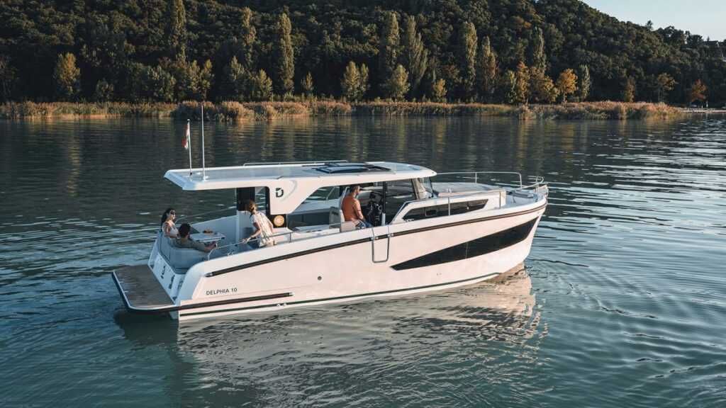 Kifejezetten kisebb sebességre tervezett, nem sikló, hanem úszó test. Jelenleg még elérhető dízelhajtással is, de pár éven belül már csak elektromos változatban lesz kapható. A nagy teljesítményű, 55 kW-os egyenes kihajtású motorban még a nagy vihar esetére is van teljesítménytartalék. A Delphia D10 LoungeTop maximális sebessége 14-15 km/h, de ezt nem feltétlenül muszáj kihasználni, sokkal kellemesebb a 8 km/h körüli utazósebességgel hajózni. Elektromos motorral szerelve a modell komoly favorit a csatorna- és tavi hajózásban Európa-szerte.