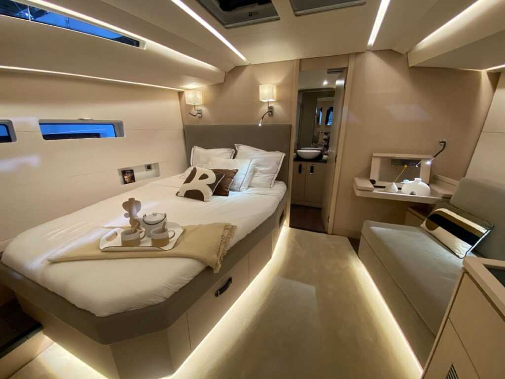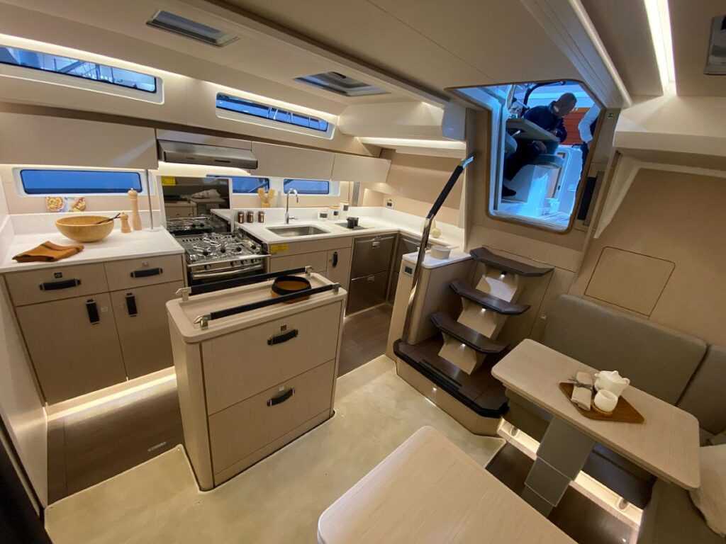 A boot Düsseldorfon bemutatott (képeink is ott készültek) 17 méter hosszú vitorlás alaposan átgondolt és előzmények nélküli okos elrendezést kapott, hogy a fedélzetén lévők jólétét maximálisan szolgálhassa, megvalósítva a Jeanneau Yachts-tulajdonosok legvadabb álmait is.