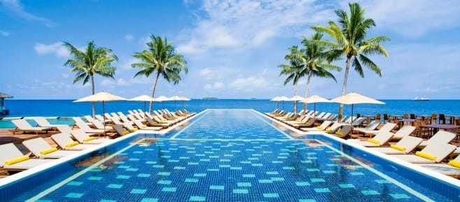 Paradise Island – a diszkontmegoldás Azzal semmi különlegeset nem mondunk, hogy szuper a strand, mert a Maldív-szigeteken mindegyik az. De az biztos, hogy az ingatlanra ráférne némi felújítás. Ugyanakkor imádni való a medence körüli buja növényzet és a rengeteg kényeztető szolgáltatás. Malé reptere pedig mindössze tizenöt perc alatt elérhető.