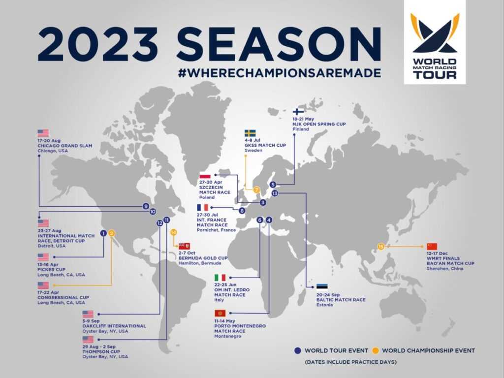 A World Match Racing Tour bejelentette a 2023-as világbajnoki szezonjának versenynaptárát, amely tíz ország tizenöt versenyét foglalja magában.