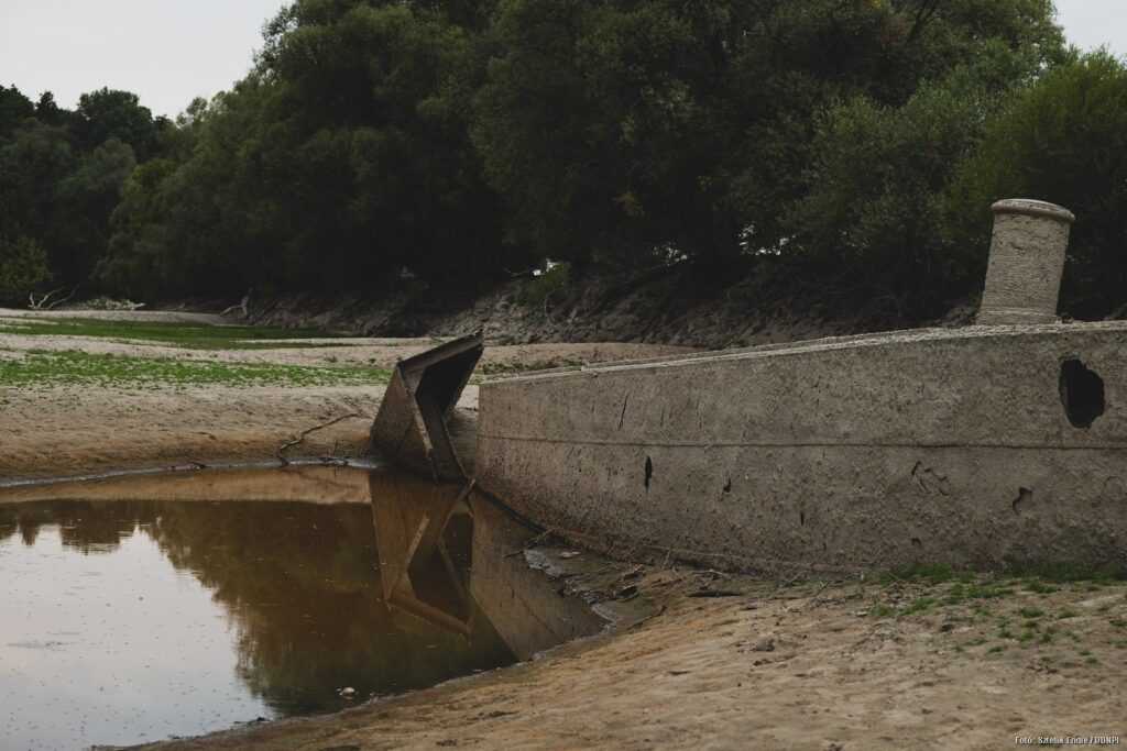 Az elmúlt időszak gyorsan apadó vízszintje ismét láttatni engedte a Mohács alatti Duna-szakaszon található Gabriella-sziget belső ágában elsüllyedt hajók roncsait.
