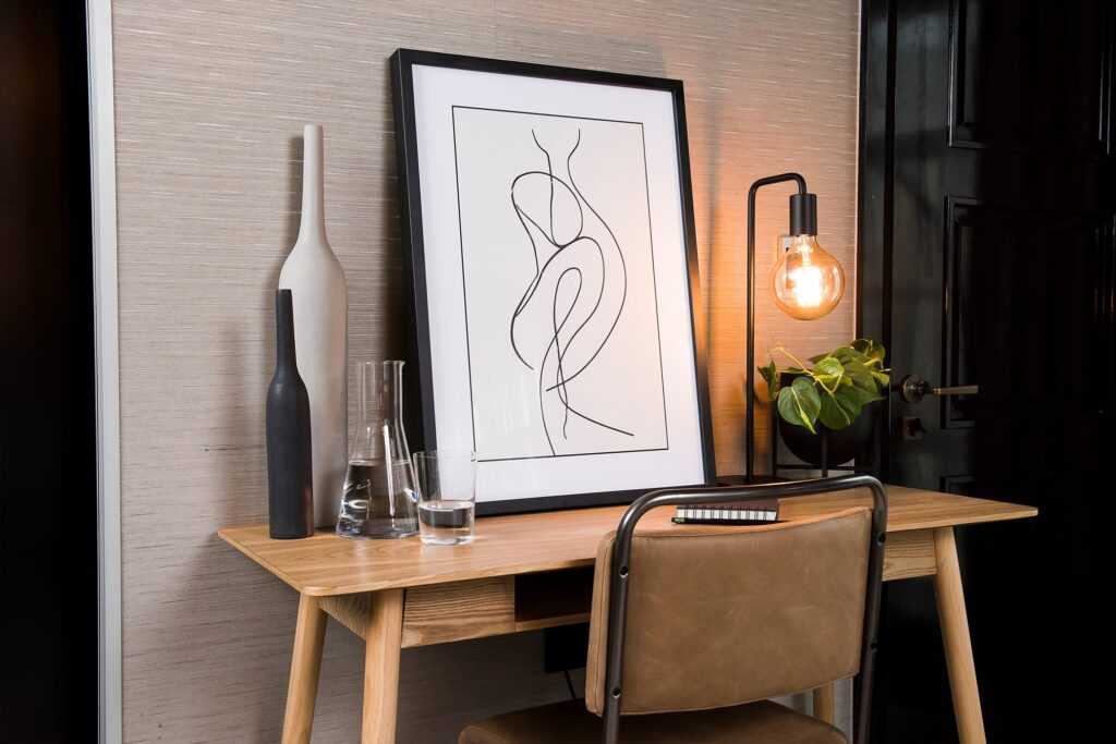 Kaitlyn Ham monokróm világára viszont a fehér bőrszékek, a szürke árnyalatai, az egyedi grafikák, a pasztellszínű gyapjútakarók jellemzők.