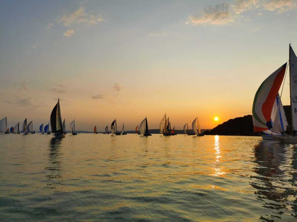 A füredi befutó előtt a szélviszonyok inkább a Fifty-Fifty-nek kedveztek, de a címvédő így is csak az utolsó pillanatokban előzte meg az éppen vezető Prospex-Delta Sailing Team-et. Az 56. Kékszalag Raiffeisen Nagydíjon összesen 37 hajóosztályban hirdettek győztest, ám az érmek és trófeák mellett az összes hajós jutalma volt már pénteken este a naplemente látványa. Több száz hajó haladt ekkor egymás közelében a Balaton arany színűre festett vízén Tihanynál, miközben a nap lebukott a Balaton-felvidék hegyei mögé. A 2024-es verseny erről a festői képről lesz emlékezetes.