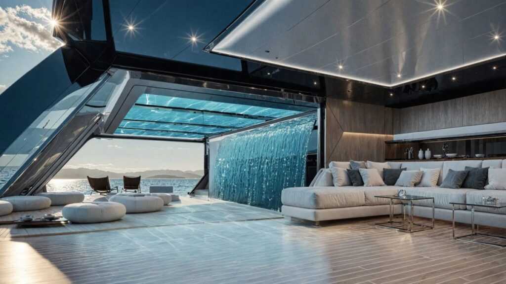 Mauro Giamboi különleges koncepciót mutatott be: a 40 méteres motoros katamarán jachton a „strandé” a főszerep. No meg a vízesésé.