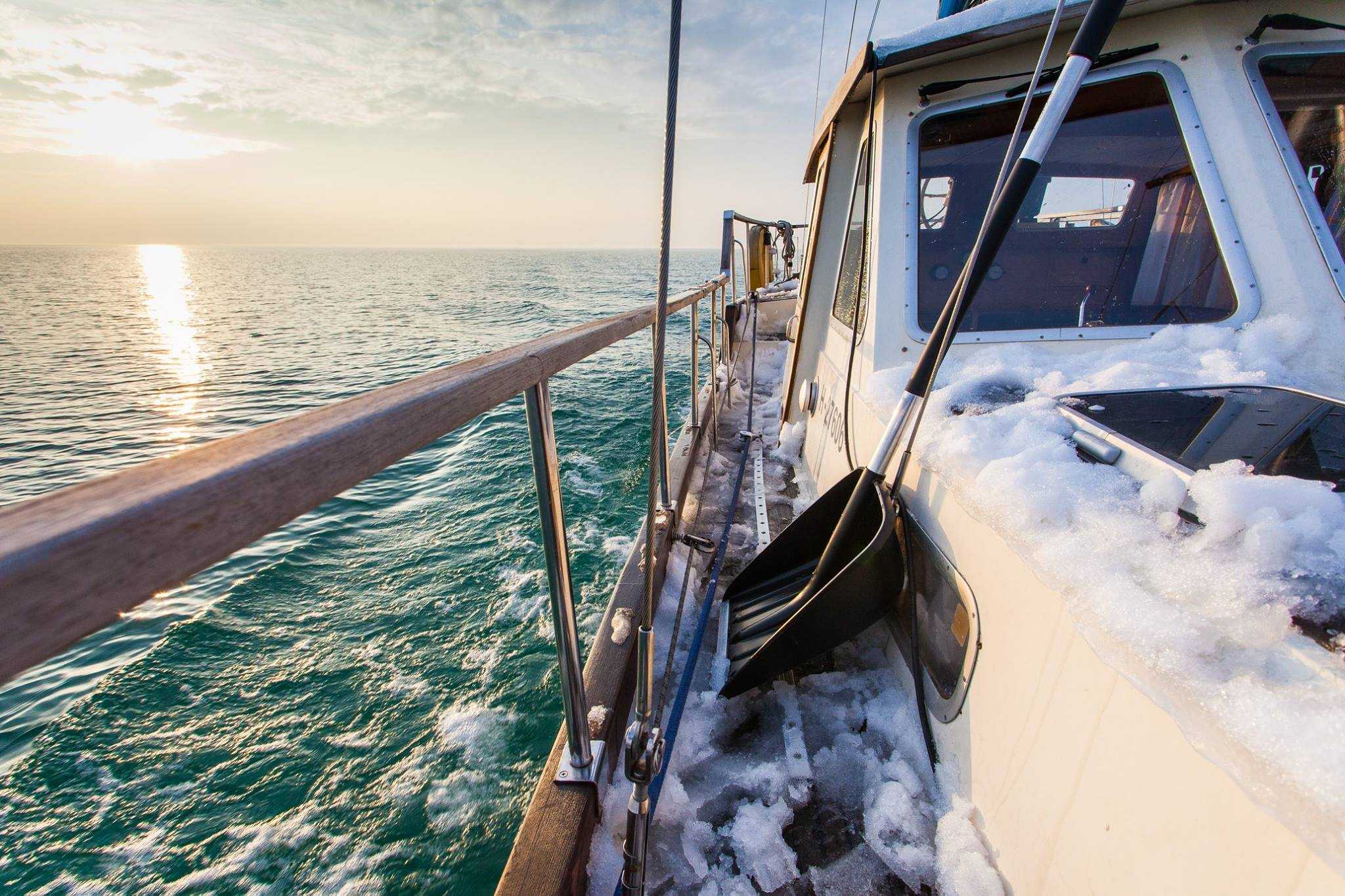 Ropogott a jég a hajók orra előtt, de nem volt kérdés, hogy könnyen áttörik a jégtáblákat. Elöl egy olyan vitorlás haladt, amelyet Finnországban, pontosan ilyen viszonyokra terveztek és készítettek. „Kezdetben féltettük a hajót a jégtől, és ahogy ránézünk a hajó orrára, felszereltünk egy kis jégvető fémet, de soha semmilyen sérülést nem okozott a hajónak. Tehát mondjuk maga a jeges vitorlázás nem jelent feltétlenül veszélyt, inkább csak az, hogy ha kiszorulunk, és nem tudunk hazajönni” – mondta a legénység egyik tagja.