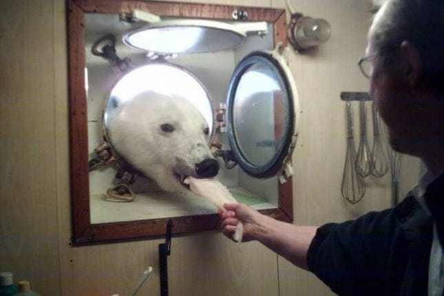 A kutatók épp gofrit készítettek a délutáni kávéjukhoz, amikor a Lance nevű hajó konyhaablakán benézett egy kíváncsi jegesmedve. Ahelyett, hogy a veszélyes ragadozót elzavarták volna, inkább megkínálták egy halszelettel, amelyet az állat el is fogadott.