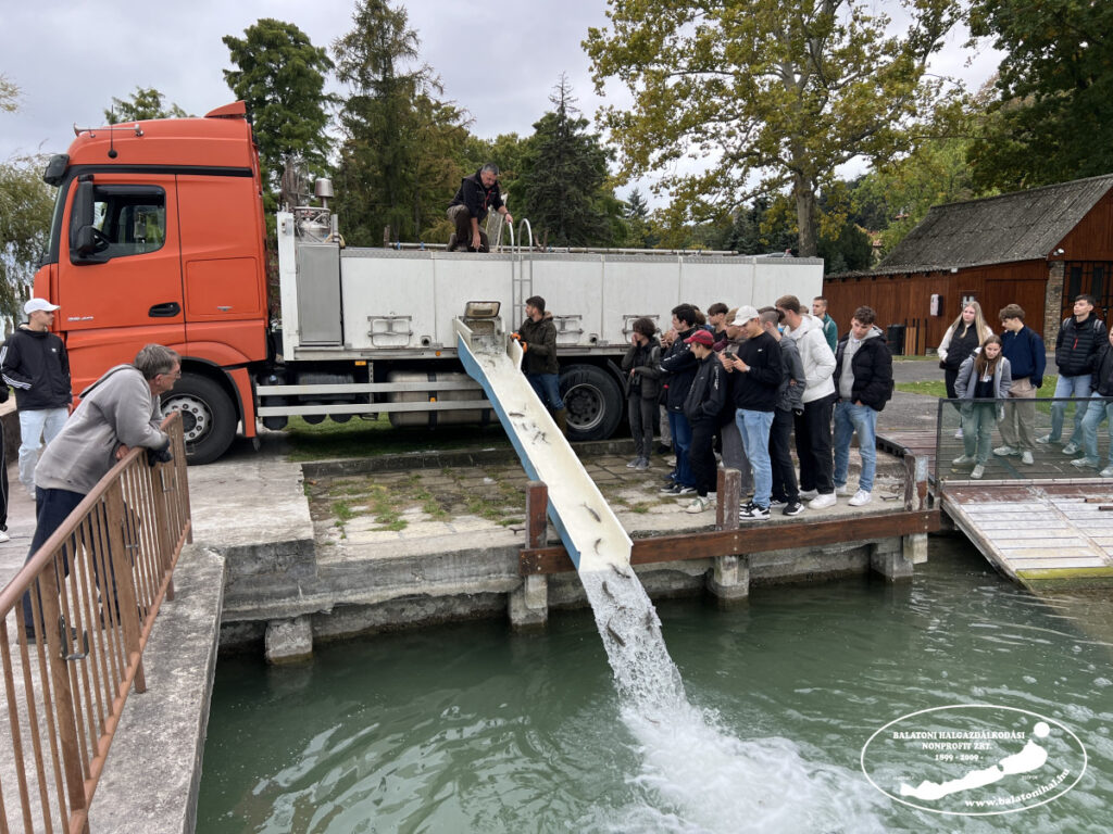 Folyamatosan zajlik az őszi haltelepítés a Balatonban: október 8-án egy pótkocsis kamionnal 10 069 kilogramm háromnyaras ponty érkezett a tóba, amelyet Balatonfüreden, a Kékszalag Port kikötőnél helyeztek vízbe.