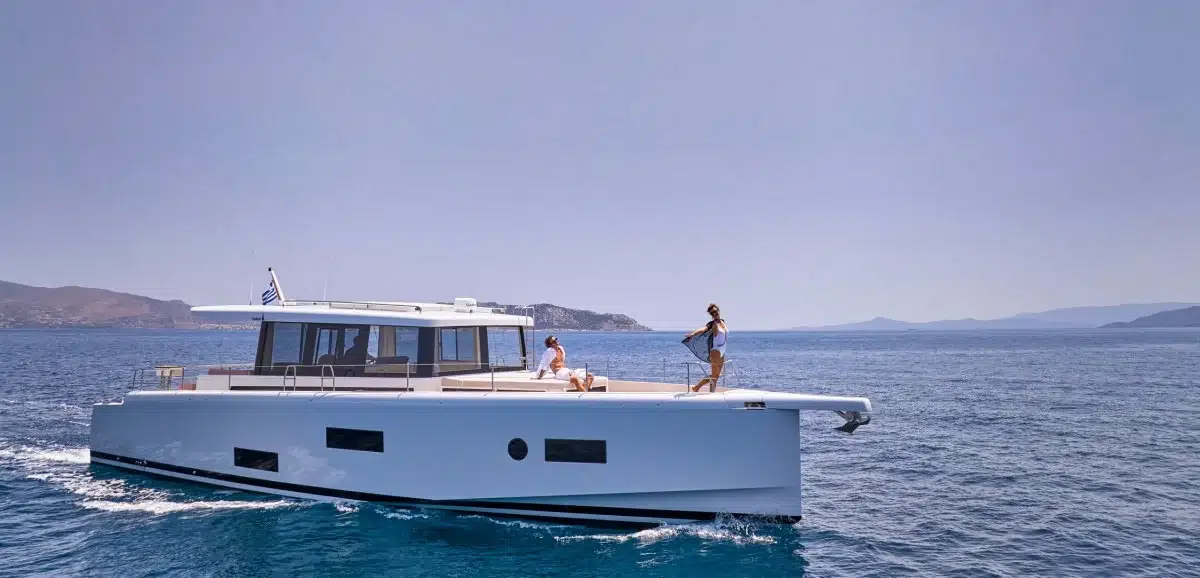 Az Aera 50 méteres hibrid katamarán széllel, biodízellel, hidrogénnel és hidrogenerációval hajtva kínálja a szuperjachtélményt…
