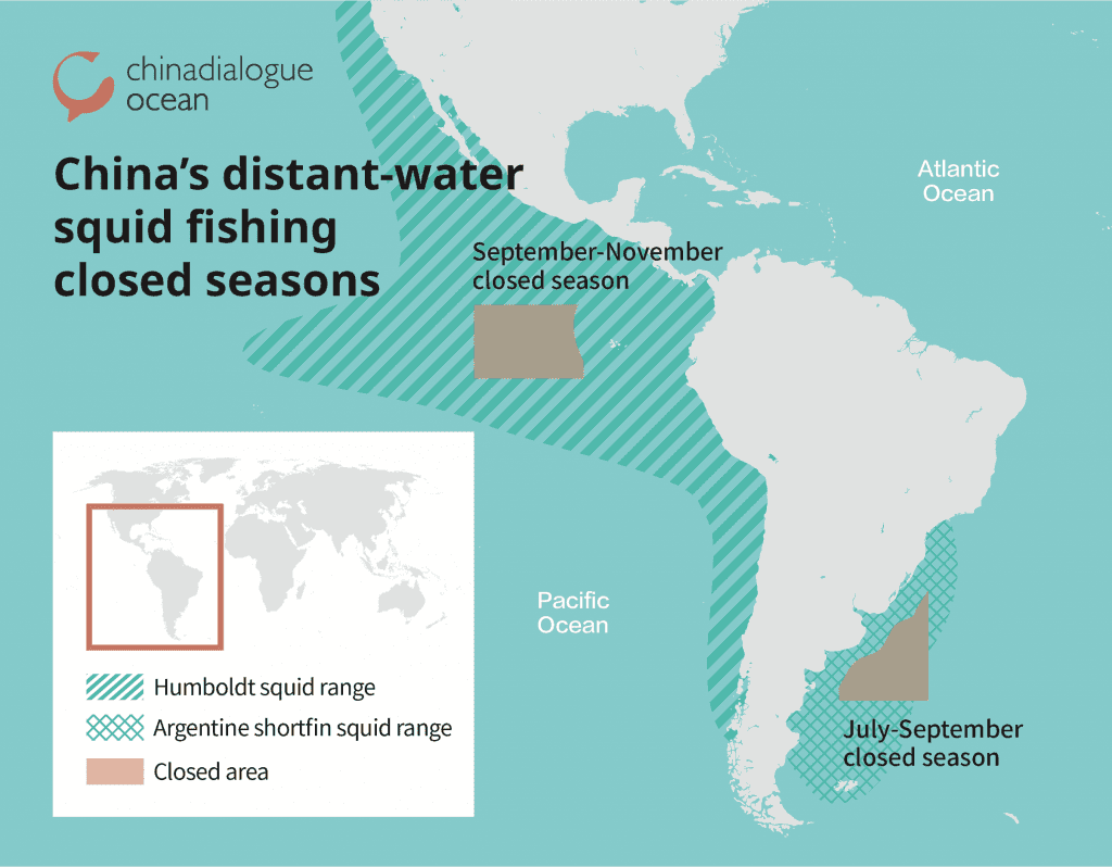 A kínai Földművelésügyi Minisztérium halászati irodája bejelentette, hogy két évre korlátozni kívánja az Atlanti-óceán délnyugati részének és a Csendes-óceán keleti részeinek tintahalhalászatát, hogy az itt halászott két faj populációinak számára biztosítsa a regenerálódást.