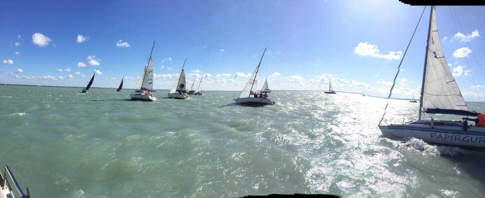 A regisztrációt követően mindenki reggelizhetett, hiszen a kikötő konyhája nagyszerű krémekkel, teával, friss péksüteménnyel várta a vendégeket. A gyors kormányosi értekezletet követően a csapatok vízre szálltak és a pályára hajóztak. A szél ekkor már egyre erősödött, de a rajt 11.00 órakor Alsóörsről rendben elment. Az első pályajel Almádi volt.