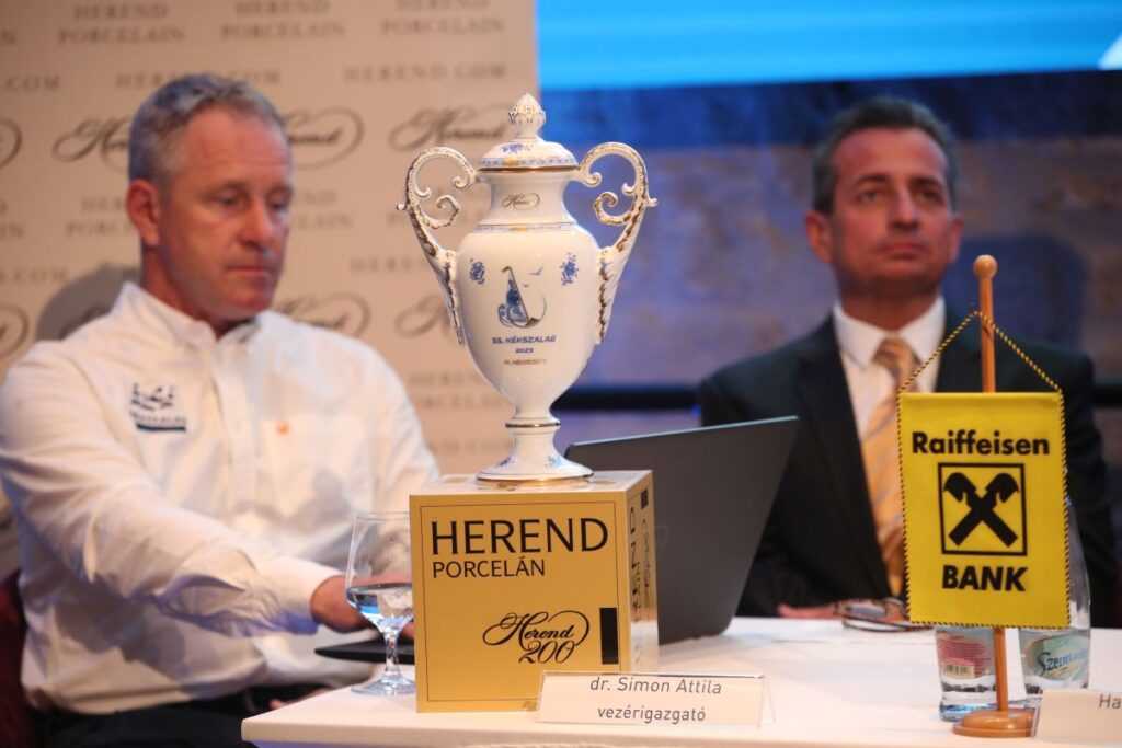 „A Herendi Porcelánmanufaktúra hosszú évek óta együttműködő partnere a Kékszalag vitorlásversenynek. Idén is egy új kreatív mintával készültünk, utalva Herend innovatív gondolkodására. Az idei díjon az elvékonyodó kék szalag, mint a Balaton vizének szinonimája jelenik meg a motívumban, és ennek a hullámként funkcionáló kék szalagnak a szárnyán található a klasszikus, kék Apponyi mintával dekorált vitorlás hajó, amint az élre tör. A háttérben szálló madarak sziluettje még inkább kiemeli a nagy vízfelület jelenlétét. A 24 karátos matt arannyal történő festés tovább nemesíti a trófeát” – mondta el Dr. Simon Attila a Herendi Porcelánmanufaktúra Zrt. vezérigazgatója.