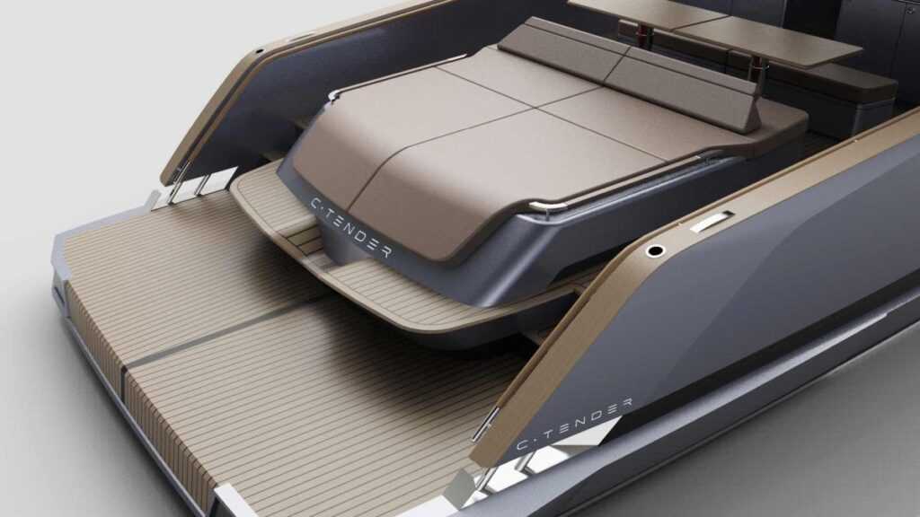 „A jachthoz kiválasztott és felhasznált anyagok a legjobb minőségűek, az epoxi burkolat és az Alexseal festék ugyanaz, mint a szuperjachtokon. Ezek minden bizonnyal drágábbak az átlagosnál, de lehetővé teszik, hogy a C-Tender 55 egyedi fényezést kapjon: fémes Bentley kék színe passzol a tulajdonos autójához.”