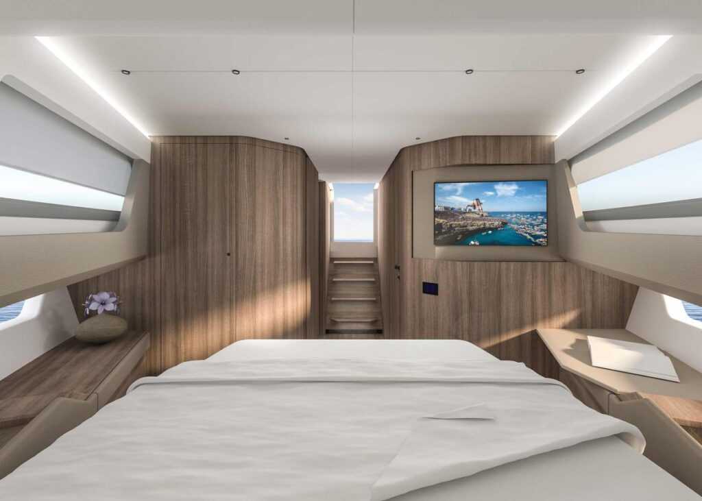 „Az ügyfél egy sportos hajót szeretett volna, amelyik képes akár 40 csomót is meghaladó sebességre” – magyarázza Davide Zerbinati, a projektmenedzser és egy nagy tapasztalattal rendelkező műszaki ellenőr. „Ezért döntöttünk a szénszál széleskörű felhasználása mellett, ami lehetővé tette, hogy a súlyt alacsonyan tartsuk a szilárdság veszélyeztetése nélkül. A fedélzet és az összes felépítmény abból készült, beleértve a két felhajtható oldalteraszt, az összes szerkezeti válaszfalat és a hajótest szerkezeti rácsát.”