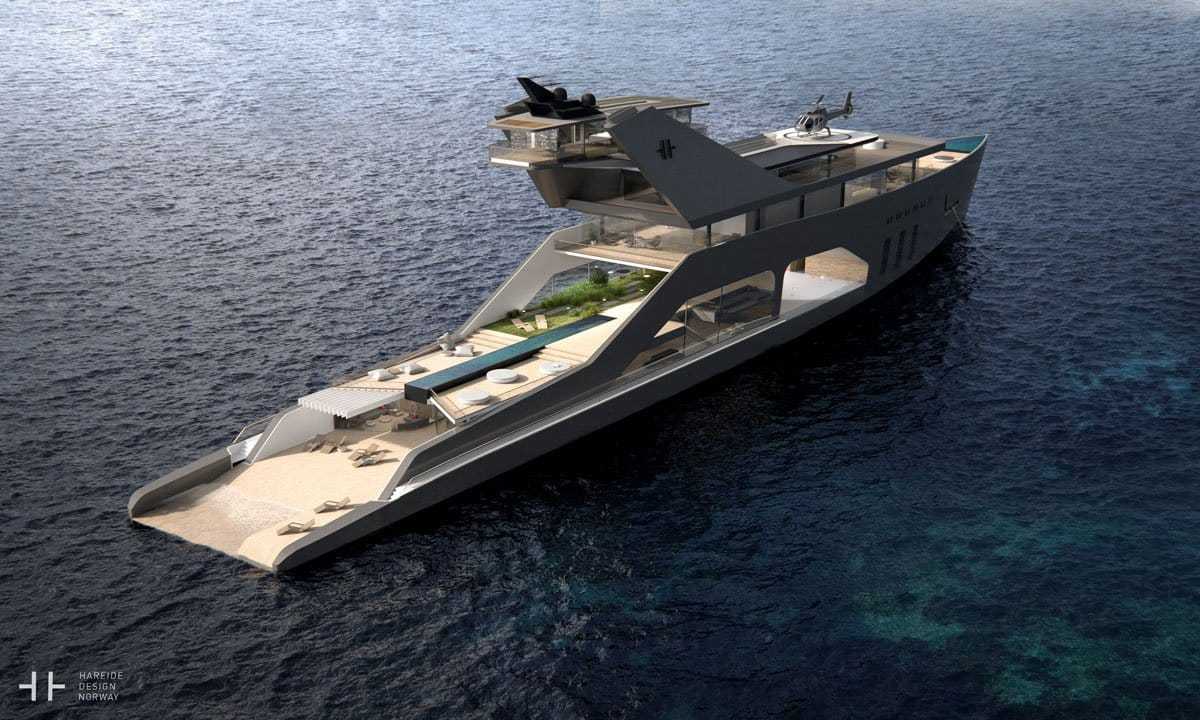 Egy norvég cég, a Hareide Design olyan jacht formaterveivel rukkolt elő, amellyel akkor sem kell kikötnünk, ha napozni támadna kedvünk a víz partján.
