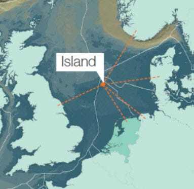 Dánia, Hollandia és Németország létrehozna egy mesterséges szigetet az Északi-tengeren, az oda telepített szélfarm pedig 80 millió ember áramellátását biztosíthatná. Az energiaszigetet az úgynevezett Dogger-padon, Anglia keleti részétől 100 kilométerre építenék meg.