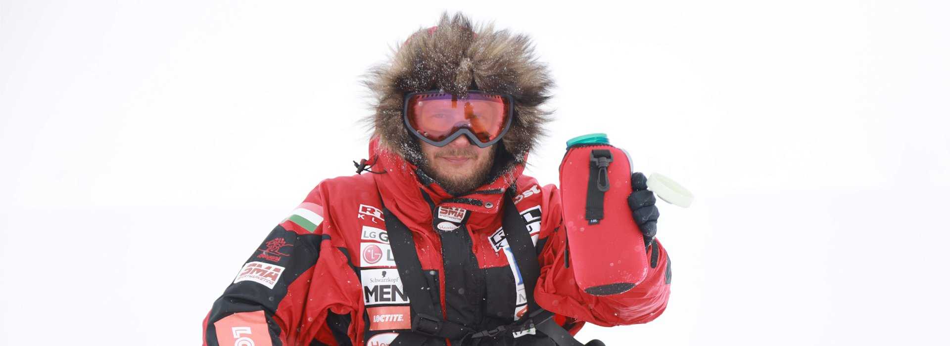 A 40 km/órás alapszél ma mindenkinek az arcára fagyasztotta a jókedvet – vallotta be a magyar extrém sportoló. – Az első erősebb széllökésnél mindenki előkapta a kameráját, hogy rögzítse a fehéren porzó felszínt. Aztán néhány perc múlva rájöttünk, hogy ez nem átmeneti látvány, hanem egész nap ez lesz. Küzdöttünk is keményen minden egyes méterért. Az utolsó két szakaszon már átfagyva, elgyötörten araszoltunk előre, a végén pedig határozottan az volt az érzésem, hogy a táv és az idő mintha lassan, de módszeresen ki akarná kezdeni azt, ami még megmaradt bennünk. És mégis… Valahol legbelül tudjuk, hogy az időjárás, bármilyen brutális, nem ellenünk van. A hely sajátossága ez. Maximum mi csinálunk problémát belőle, hogy még mindig a megszokott normálishoz akarjuk hasonlítani. A lényeg, hogy küzdünk az elemekkel, a monotonitással és leginkább önmagunkkal itt a világ alján.