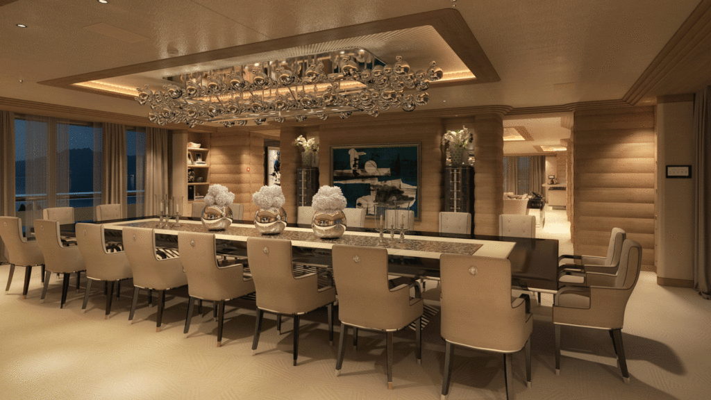 A 12 vendéget 8 kabin várja, amiből 7 VIP-kabin a főfedélzeten található, míg tulajdonosi lakosztály a legfelső szinten kapott helyet. 18 kabinban, 32 fős személyzet lesi a vendégek óhajait.