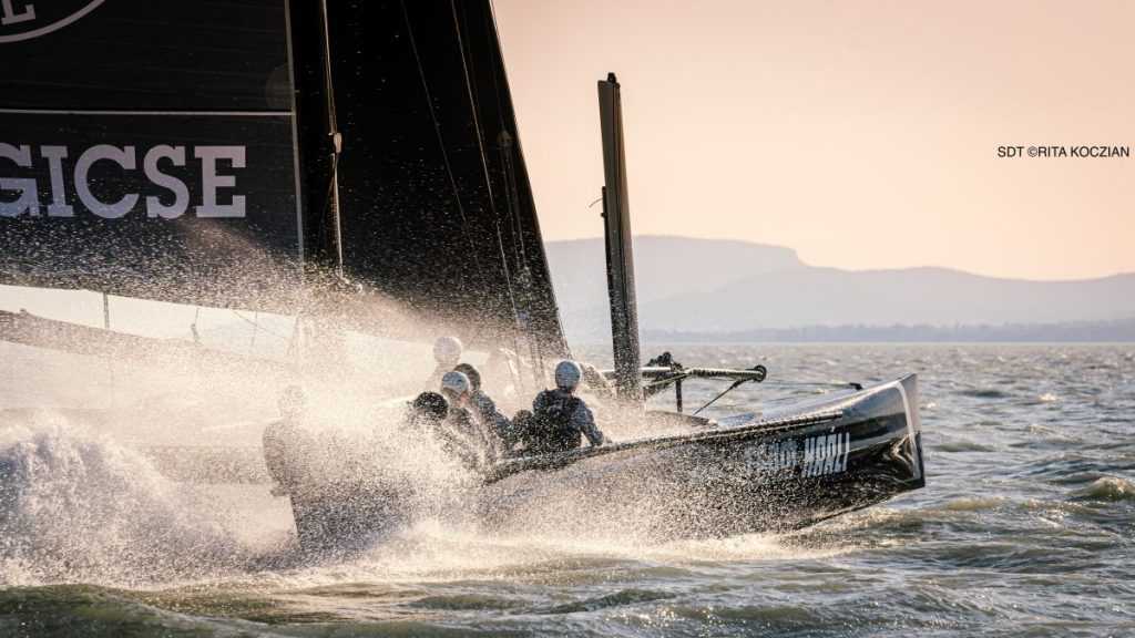 L. M.: Az első professzionális versenyélményemet egy D35-ös katamarán fedélzetén éltem meg. Ez a típus a svájci tókerülő versenyek koronázatlan királya, és már a Balatonon is sikert sikerre halmoz. Majd átültem egy időre a GC32-es szárnyas katamaránra a Swiss Foiling Academy színeiben. Ezzel zömében one-desing pályaversenyeket rendeznek különböző egzotikus helyszíneken. Sok hasonló eleme van, mint a Sail GP-sorozatnak.