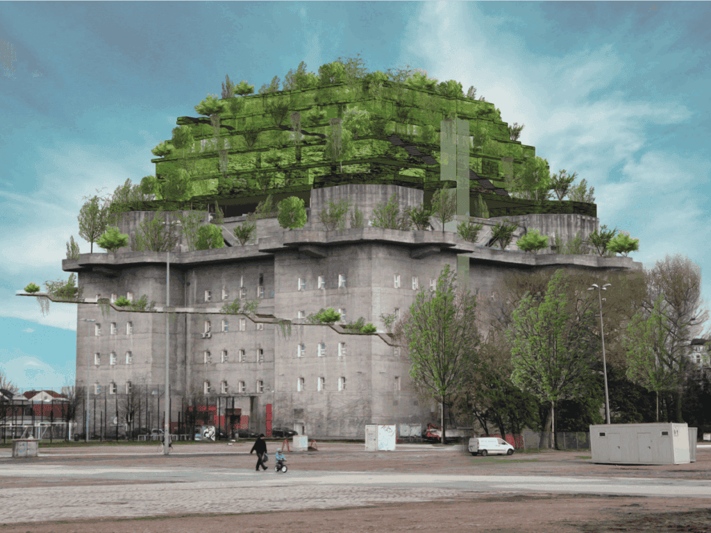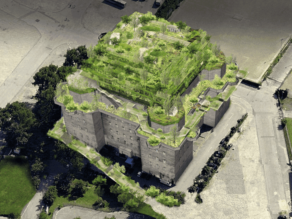 A légvédelmi tornyot 1942-ben építették, és a 35 méteres betonóriás egyike lett a legnagyobb erődítményeknek. Azóta sok változáson ment keresztül, főleg, ami a funkcióját illeti: elsősorban művészeti és kulturális rendezvényeknek, művészek műhelyeinek adott otthont.
