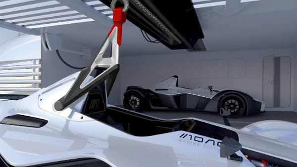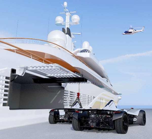 Ennek megkönnyítésére karbonból sütött darukart is adnak az autóhoz, amely könnyedén beépíthető a hajókba. Vannak olyan rögzítőgyűrűk is a vázon, amelyek segítségével a helikopterleszállóhoz lehet biztosan rögzíteni a BAC Monót.