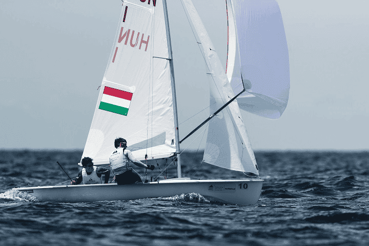 „A 470-es pálya egy sziget mögött van, így adott volt, hogy nagyon forgolódós lesz. Szerencsére mindkét rajtunk jó lett, így szabadon tudtunk vitorlázni a futamok elején, sajnos az első futamban túlzottan középen maradtunk így nem értünk fel valami jól. Onnan sikeresen feljöttünk az első hátszélben 5-6 helyet, amit nem tudtunk megtartani így 15. helyen végeztünk. A másodikban jobban kijött a lépés, és elsőnek felértünk a krajcbójához, onnantól csak a görögökkel kellett küzdenünk az első helyért. Szerencsére egy kicsivel gyorsabbak voltunk, így meglett az első futamgyőzelmünk” – értékelte a keddi versenynapot Gyapjas Balázs. Ezzel a két futammal most hetedikek, ami nagyon jó pozíció a folytatáshoz.