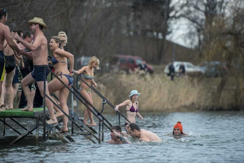Évek óta hagyomány, hogy január elsején a bátor orfűiek megmártóznak a Pécsi-tó jeges vizében.