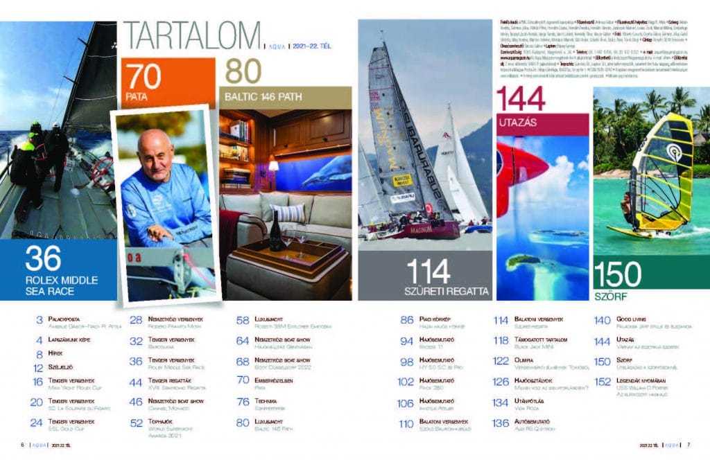Beszámolunk a nagy tengeri versenyekről, melyek közül többnek magyar vonatkozásai is voltak: Maxi Yacht Rolex Cup, 52. La Solitaire Du Figaro, SSL Gold Cup, Rolex Middle Sea Race, Barcolana