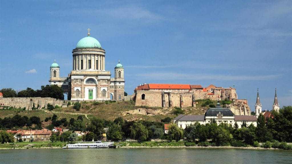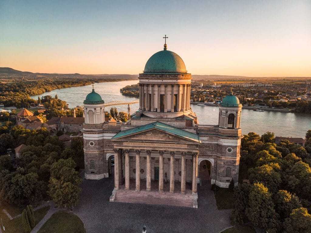 Aerial view of the Esztergom Basilica in Esztergom, Hungary