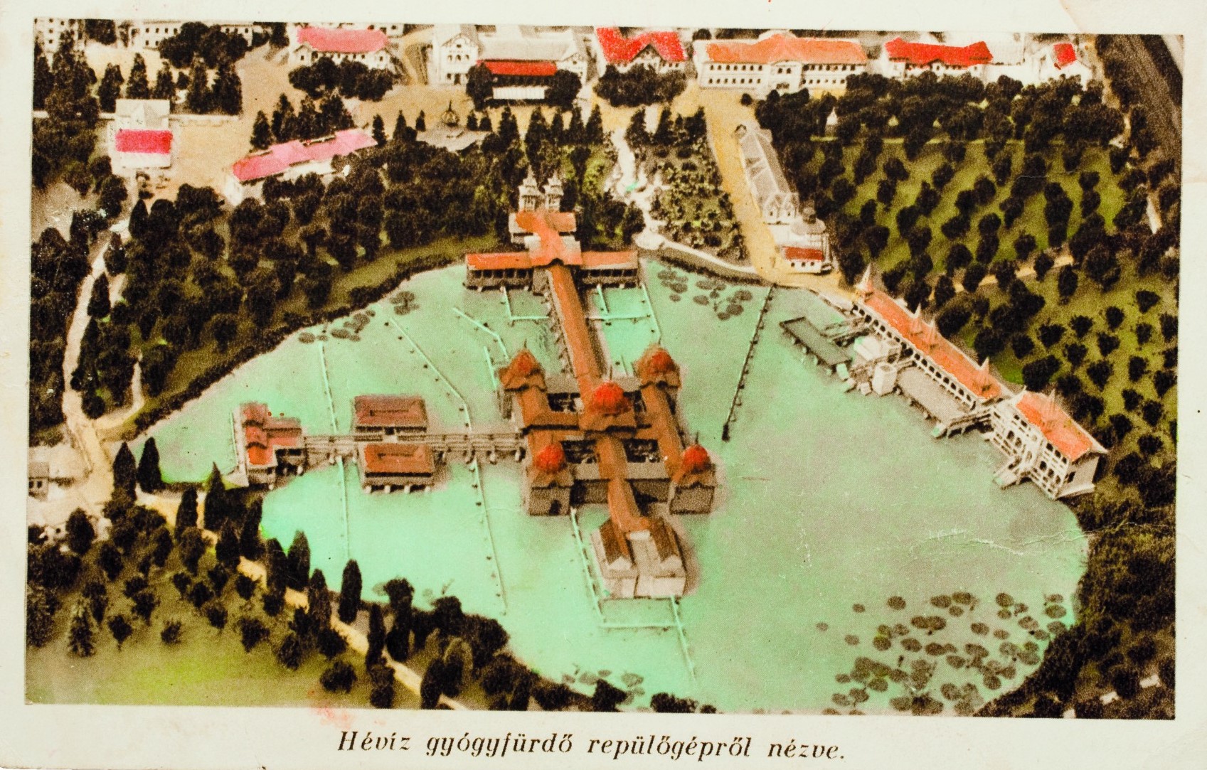 A Hévízi-tó mellé, fölé emelt épületek stílusa minden korszakban változott.
