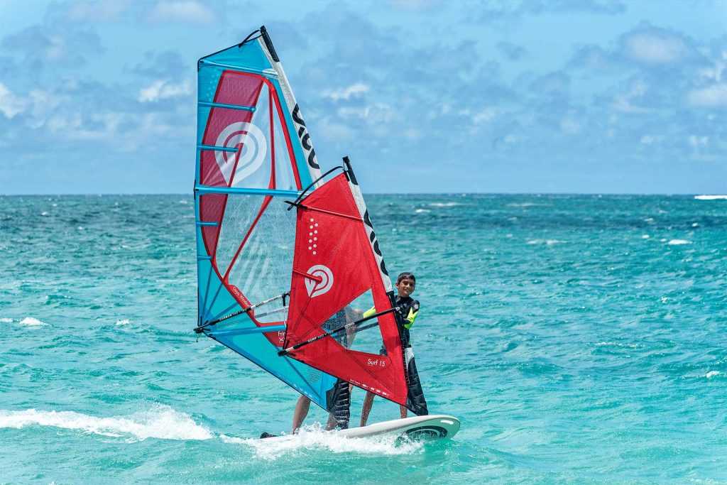 A gyártók többsége komplett kezdővitorlázatot is kínál (például Gunsails LiteRide), ahol 100 százalék, hogy passzol az árbóc és a bum hossza, illetve típusa a vitorlához. A cél, hogy jobb- és balcsapáson, egyszerű fordulóval – szél felé – eljussunk pár száz méterre, majd vissza a kiindulási pontra. Elég sok mozgást és egyensúlyt kell összehangolni ehhez az egyszerű művelethez, meg kell érteni a szörf fizikáját és „látni” kell a szelet is. Ha ez megy, ami szabadidődtől függően pár hónap is lehet, érdemes továbblépned, azaz nagyobb szelekbe is bemerészkedni. Ha erősebb a szél, az eredeti, 4-5 négyzetméteres tanulóvitorla is soknak tűnhet, de csak elsőre. Jó technikával a siklás élvezetes lesz, és egyre nagyobb vitorlázattal egyre gyorsabb leszel. Ez a fázis a freeride deszkák és vitorlák terepe, itt az idő 130 liter körüli deszkára váltani és 6 négyzetméter körül választani vitorlát. A többi kiegészítőt, az árbócot és bumot a gyártók és a kereskedők ajánlása szerint érdemes megvenni. Hirtelen sok paraméter kerül a képbe: azonos térfogatú deszkák különböző formákkal, hossz- és szélességi méretekkel, vitorlák erősítésekkel, stabilabb/lágyabb profillal, árbócok több hosszban, különböző karbontartalommal, dinamikával és ívvel, szkegek formája, bumok anyaga, a ruházat, illetve egy csomó olyan dolog, amit érdemes tapasztaltabb sporttársakkal megvitatni vagy bízni a kedvenc boltodban.