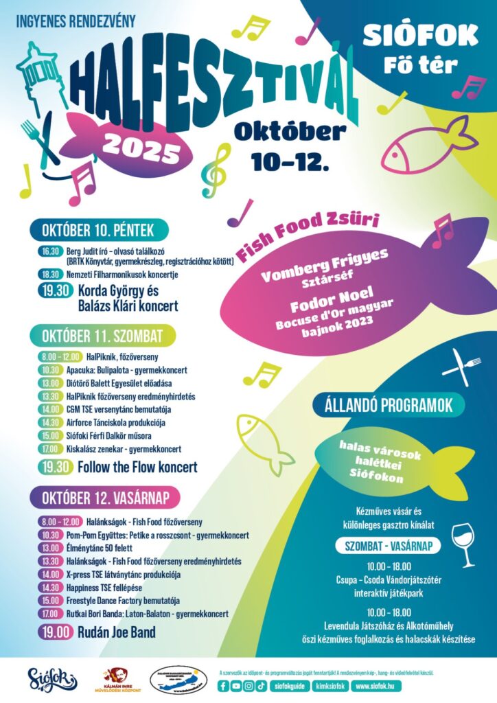 Október 10–12-én bemutatkoznak a Fő téren Magyarország „halas városai”: Baja, Mohács, Paks és Szeged képviselői különleges halételekkel készülnek a fesztiválra, a Siófoki Szakképzési Centrum, valamint a horvátországi Porec idegenforgalmi középiskolája közös főzéssel ünnepli idén induló cserediákprogramját.