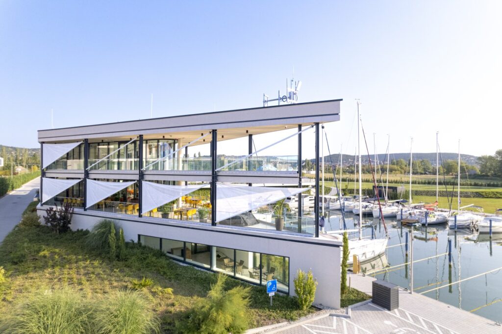 A műszaki megoldások is európai színvonalúak. A vízről érkező hajóst azonnal megfogja a könnyed manőverezhetőség, a belső mólók közötti nagy távolság, a széles, többségében cölöpös helyek – amelyek még egy 42 lábas hajónak is kényelmes otthont adnak – mind a gondtalan kikötést szolgálják. A rendezett összkép sem véletlen: az egységes védőbevonatok és hevederek igényes, kulturált környezetet teremtenek, ami sokkal vonzóbb, mint az átlagos balatoni marinák sokszínű „házi megoldásai”.